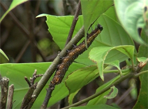 ネットの中に何の幼虫かはわかりませんが毛虫が1匹。