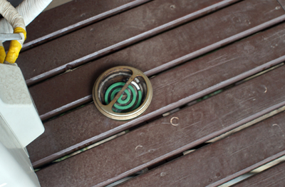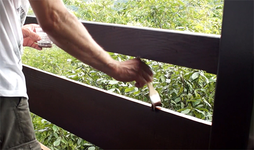 研磨が出来た部分だけ防腐剤を塗って、保護塗料を塗っていきます。