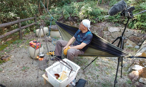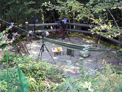 ハンモック吊って三脚いっぱい立てて、これを通行人が見たらなんて思うだろう。