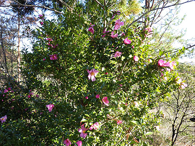 彩りの少ないこの季節にこの白のサザンカとピンクのサザンカは目を癒してくれる貴重な存在。