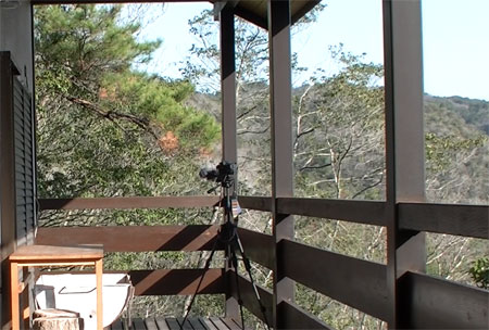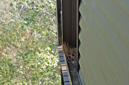 ベランダから手の届く場所なので表に出て松葉を取り除きます。