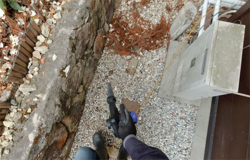 ブロアで枯れ枝を吹き飛ばしていきます。