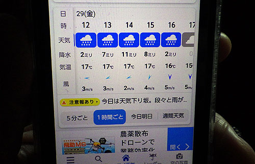 天気予報、当たりやがった!