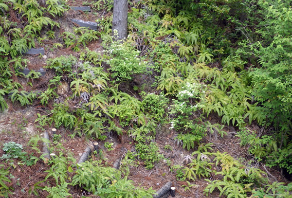 石垣の石や根本の地面が見えるぐらいスカスカだった。2014年5月撮影。