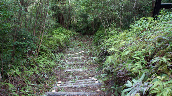 道はすっかりシダ類で覆われちゃってそこに道があるように見えない。