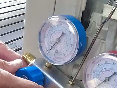 ゲージを外し、配管内に冷媒ガスを入れていきます。