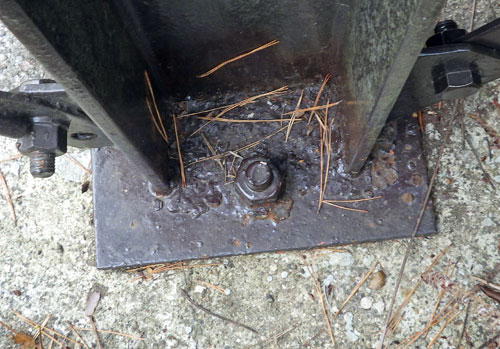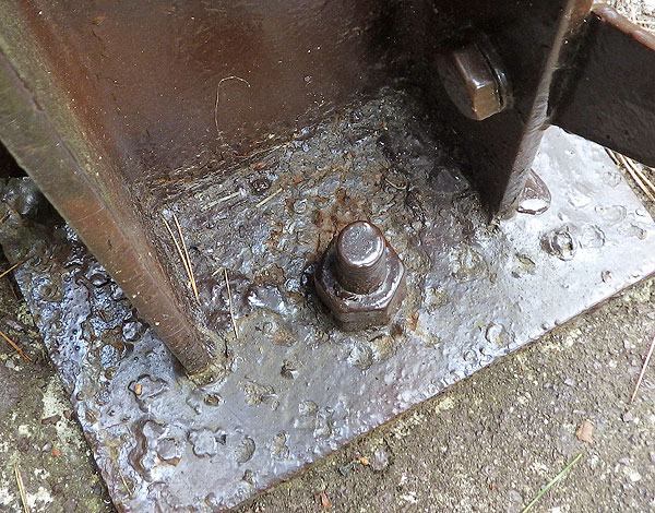 昨年の春に鉄骨の根本のサビ取りを行っていましたが、まだ4本ばかり手を付けていません。