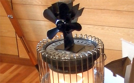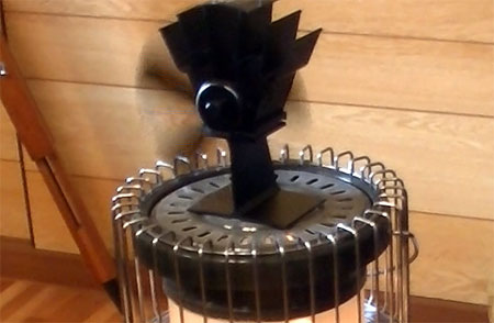 石油ストーブや薪ストーブの上に置く扇風機。 電源不要でストーブの熱で動く。