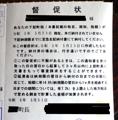 固定資産税の納付期限を遥かに過ぎていたので督促状が来ていました。