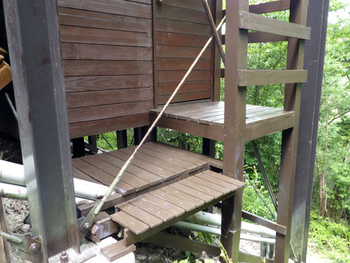 床下にある物置のステップの木部。