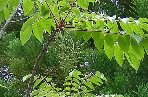 ヤマウルシの花の蕾(中央のぶどうの房のようなもの)。