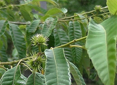 敷地の道路向かいに生えている小さな栗の木を見ると既に実りが始まっています。
