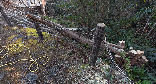 少しでも太陽の光が庭に差し込むように少しずつ邪魔になる木を切っていっています。