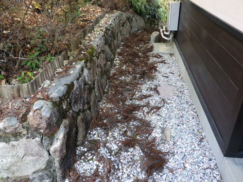 雨で杉の枝が流れていかないから会所で引っかかって詰まらせるようなことはないけど、必ず盛大に積もってしまう。