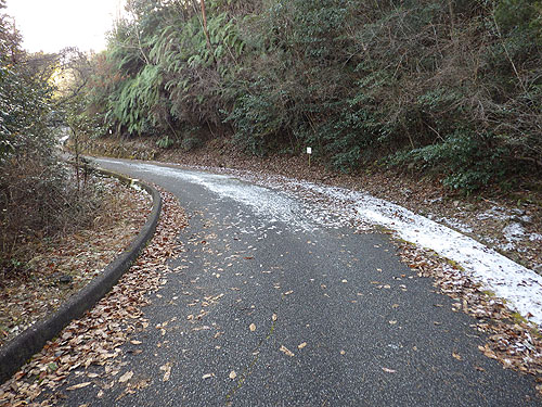 日が殆ど当たらない山の陰の道はうっすらと雪が残っている。
