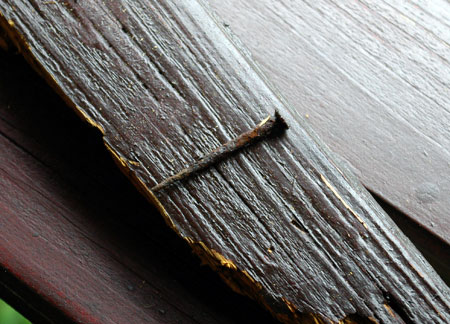 釘抜きに力を込めると、板に当たる支点の部分の板が腐っているためどんどんめり込んでいくし。